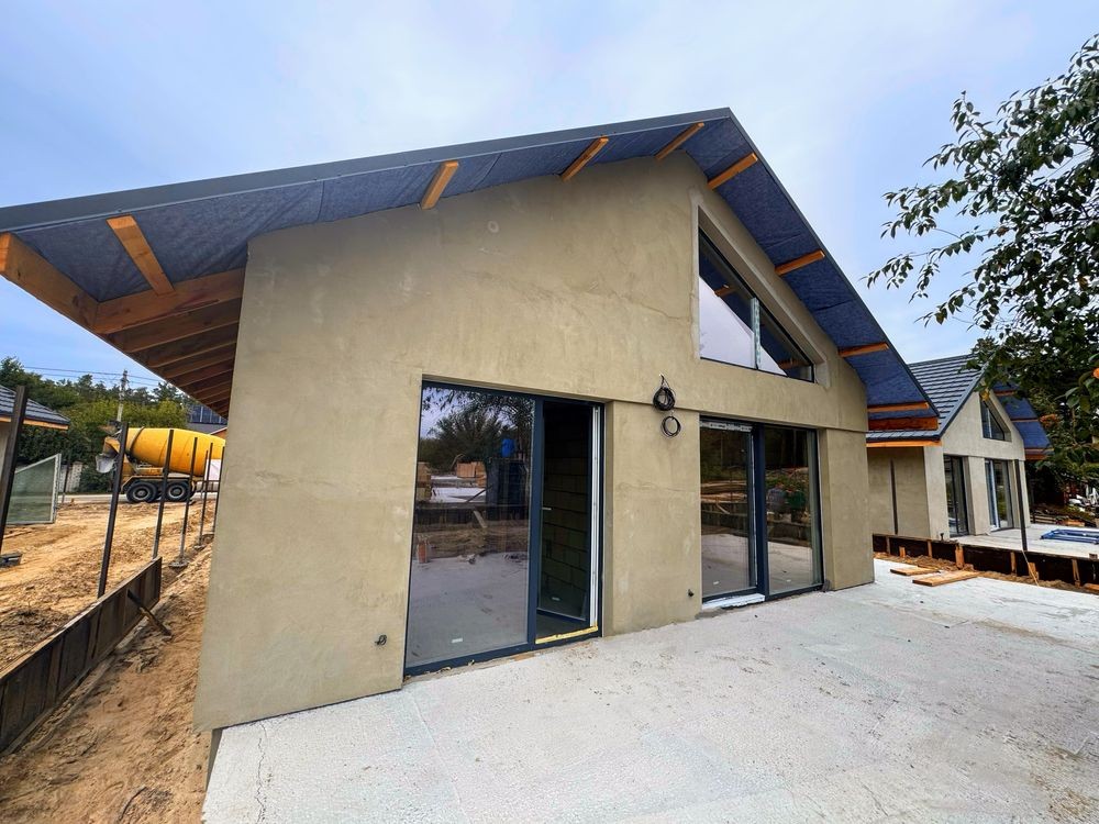 Загальна площа будинку складає 116м2. Сучасне планування, продумане до дрібниць: 2 окремі спальні, 1 майстер-спальня (з власним гардеробом та санвузлом), простора кухня-студія з каміном та панорамними вікнами, комора, технічне приміщення та 2 санвузли на будинок. Також є простора тераса розміром в 60м2, яка буде частково накрита, що дозволяє комфортно використовувати її у будь-яку пору року.