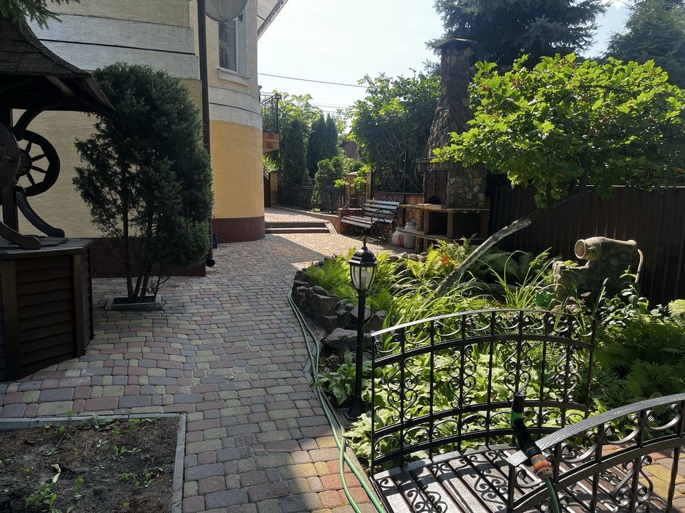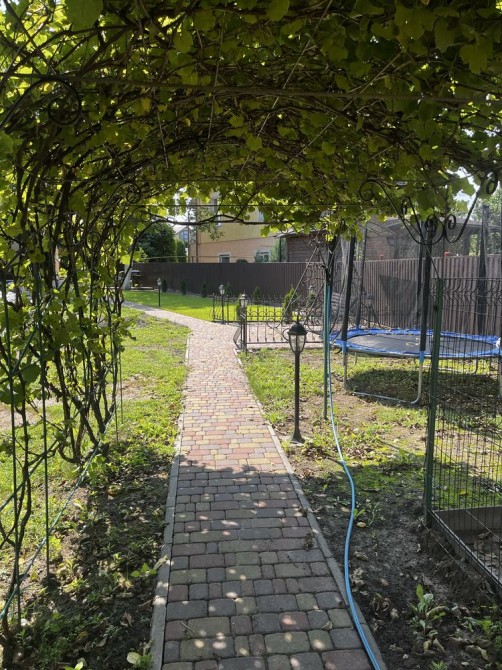 На задньому дворі є мангальна зона, бесідка, декоративний водоспад, велика територія для відпочинку, є підготовлене місця для встановлення басейну, арка заплетена виноградом, просторий вольєр для улюбленця.