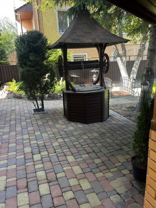 Територія навколо будинку викладена тротуарною плиткою. Побудовано гарний навіс для автомобілів.