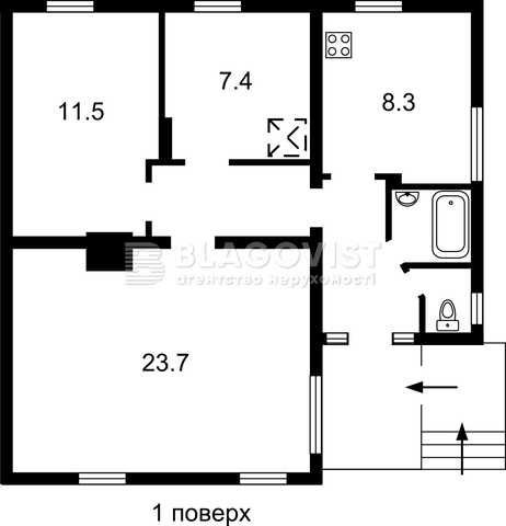 Поверховість: 2 поверхи (1-й поверх — 62,6 м², 2-й поверх — 35 м²)