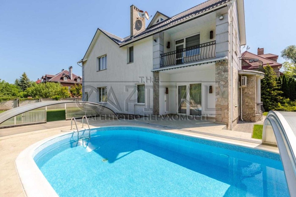 Будинок 350 м2 із басейном. Закрите котеджне містечко, охорона, поряд із будинком річка "Дніпро". Ділянка 13 соток.