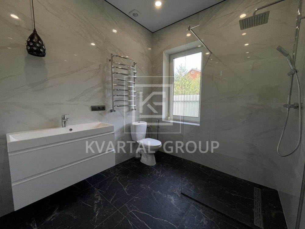 Броварской р.н.с.Рожны.Дом 2020г.Площадь жилая 210м2.Общая 300.Стены керамоблок.залиты межэтажные монолитные участок 36сот.Электричество15кВт.Интернет.Рядом лес.Маркет.базар.автобусная остановка.До города 20км