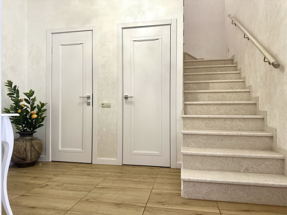 Паркетна дошка, мармурові сходи, які не скриплять і не потребують догляду, як дерево