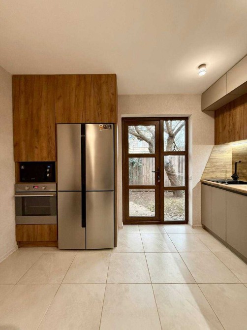 Дві окремі спальні кімнати, простора вітальня, кабінет (можна переробити в 3-тю спальню), гардеробна, велика кухня з виходом на подвір’я.