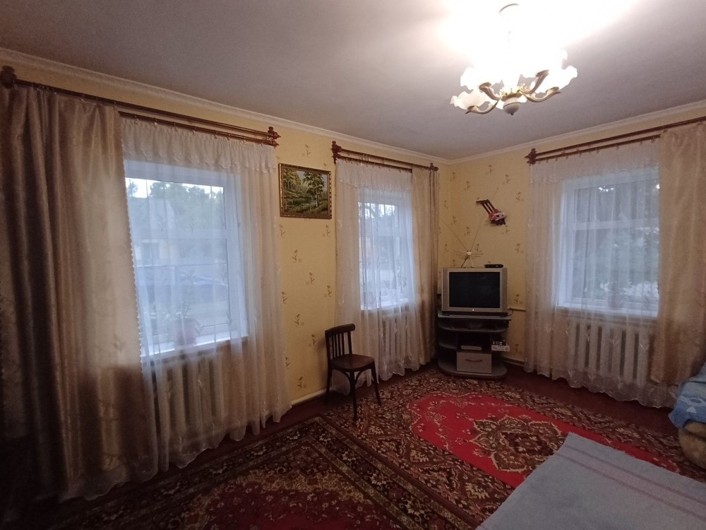 Дом в с.Заболотье, Шосткинский район. Общий вид с огорода (фото 1) Слева деревянный сарай ~ 24м2 (фото 2) Возле сарая погреб (фото 3) Летняя кухня ~ 10м2 (фото 4) Возле летней кухни есть скважина под глубинный насос (фото 5) Жилой дом ~ 50м2 (фото 6) Прихожая (фото 7-8) Коридор (фото 9) По коридора прямо сразу веранда (фото 10-11) Налево по коридору проходная комната с половиной грубки, двумя столами и счетчиком электроэнергии (фото 12-15), дальше комната со второй половиной грубки (фото 16-19) Направо по коридору кухня с печкой и лежаком (фото 20) Пол везде хороший. Долгов нет. Есть сад и плодовые деревья. Состояние все на фото.