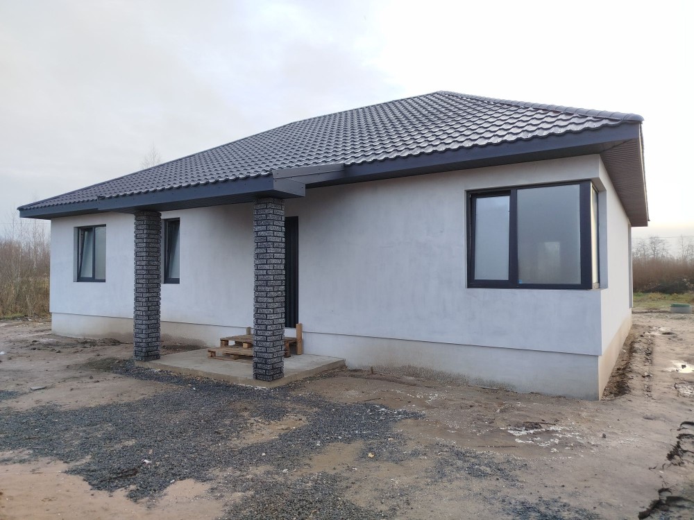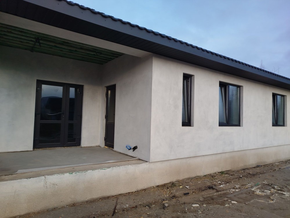 Новобудова розташована за Малинським ринком по вулиці Залізничній,на 10 сот.приватизованої землі.Будинок 120 м2:три кімнати,кухня-студія,тераса,котельня.Будинок утеплений,без внутрішніх робіт.Є електрика і скважина,вода підведена до будинку, чорнова підлога, підшита стеля.Район забудований,поруч живуть сусіди.