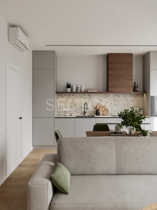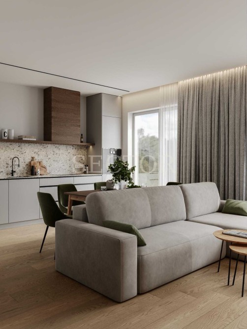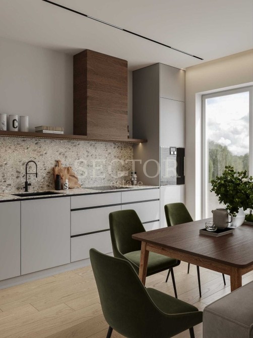 Кухня-вітальня з каміном та виходом у двір — 32,5 м²