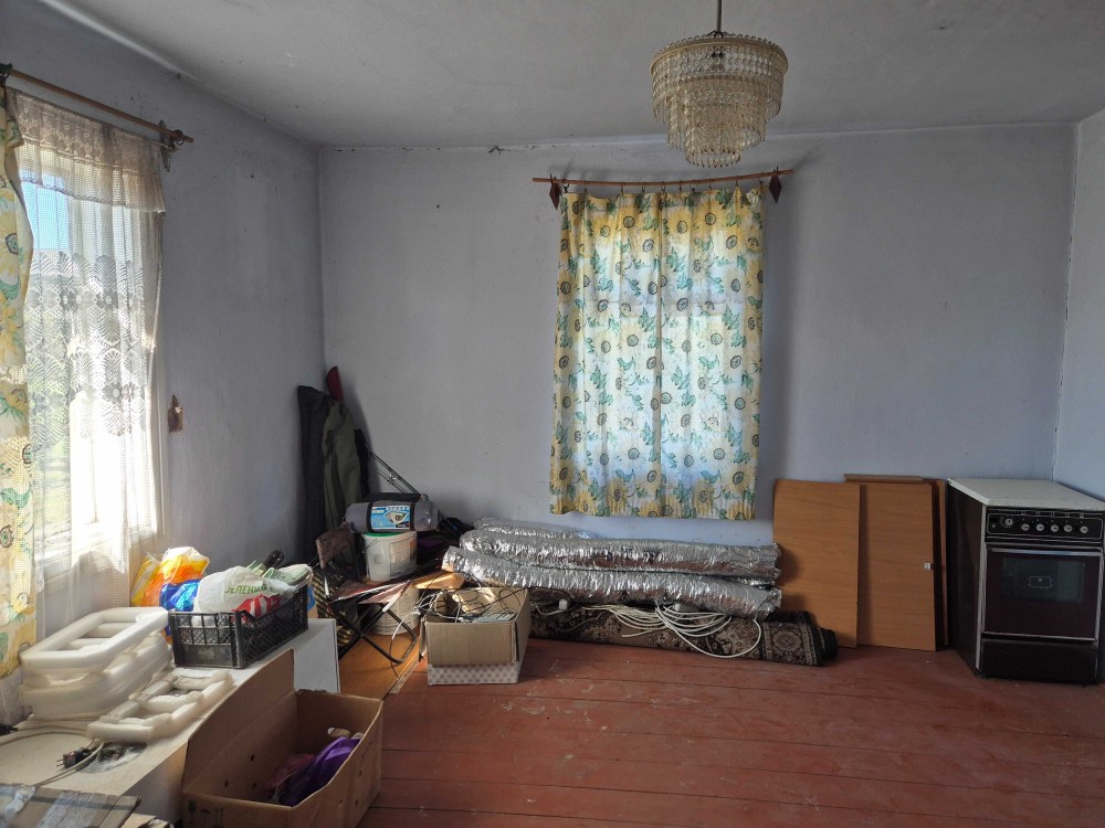 - будинок дерев'яний площею 65.4 м², є світло, газ на ділянці біля будинку, вода з криниці. Біля будинку є сарай, стодола.
