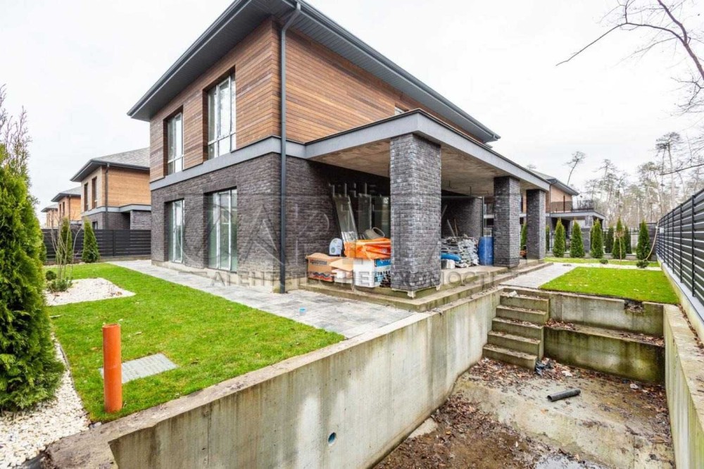 Продається сучасний будинок під чистову (опалення та електрика) з басейном 8×4 у котеджному містечку преміум-класу, с. Чайки. Поруч ліс та тиша.