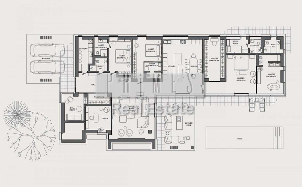 • Планування: 3 спальні, вітальня, кухня, кабінет, кімната для персоналу, гардеробні, 5 санвузлів