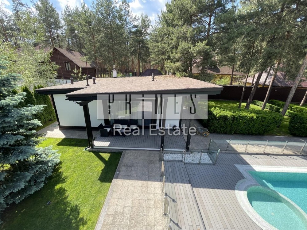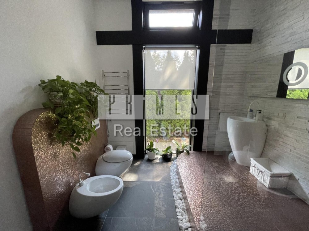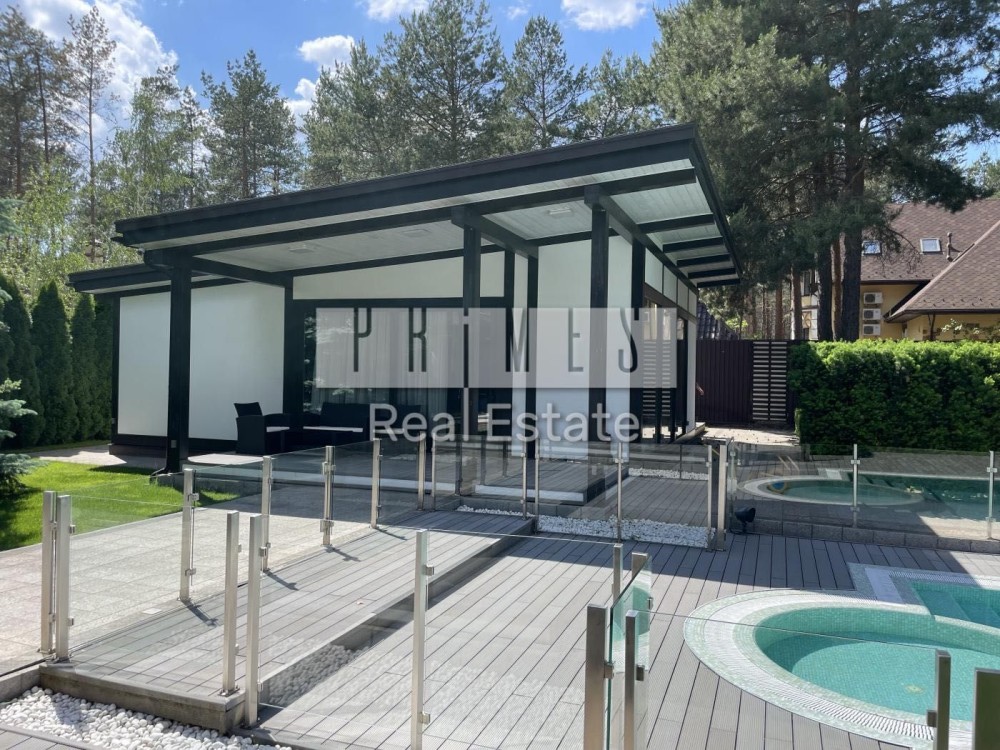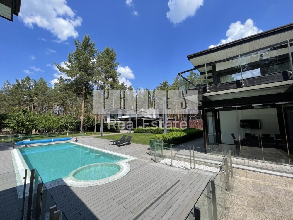 Високоякісний дизайнерський ремонт з меблями і технікою кращих світових виробників, 4 спальні зі своїми вбиральнями і ваннами, вітальня з каміном і виходом на терасу, система розумний будинок, мультирум, броньовані склопакети, двері і вікна з електроприводом, система відеоспостереження, тепловий насос, диз генератор, тераса, мангал, тандир, зона відпочинку.