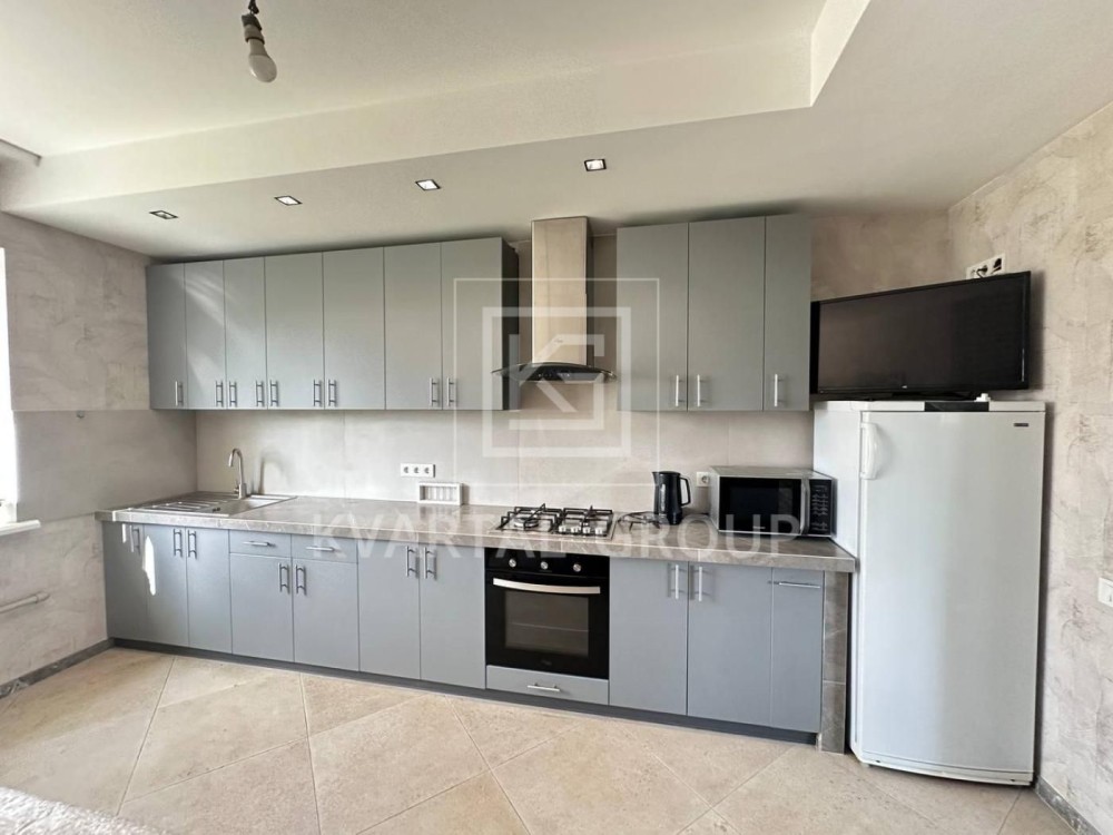 Простора кухня 15.6 м2. Окремо 3 спальні кімнати, та зона вітальні.