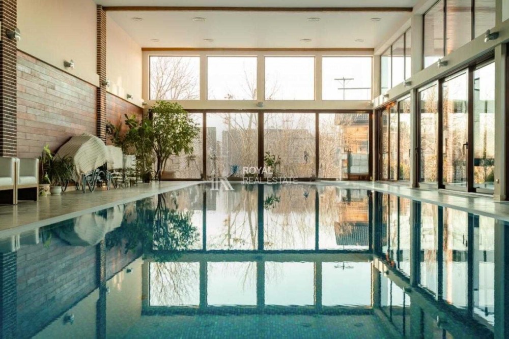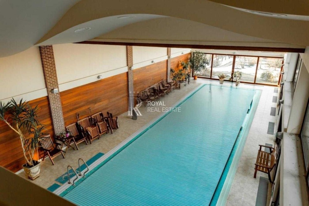Критий басейн із підігрівом, хамам, релакс-зона, панорамні вікна з видом на сад — ідеальний простір для відновлення сил та відпочинку.