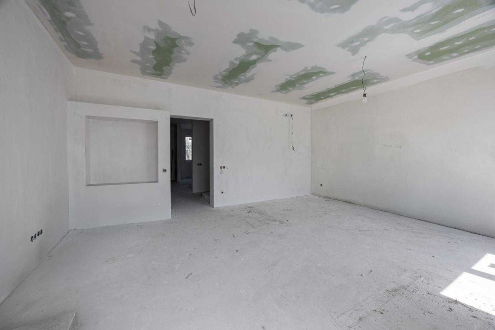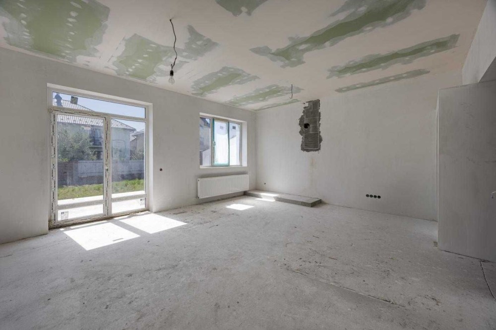 Будинок із частково виконаними ремонтними роботами. Залита стяжка на підлозі, розведена тепла підлога, встановлені радіатори, металопластикові вікна, вхідні двері, утеплений дах, покрівля металочерепиця. По будинку розведена електрика, готові виводи під встановлення сантехніки, стіни готові під фінішну покраску або шпалери, зроблені виводи під кондиціонери.