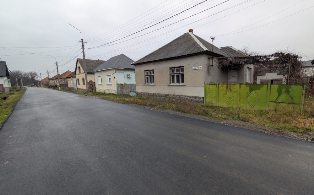 По вулиці ведуться роботи по укладанню асфальту.