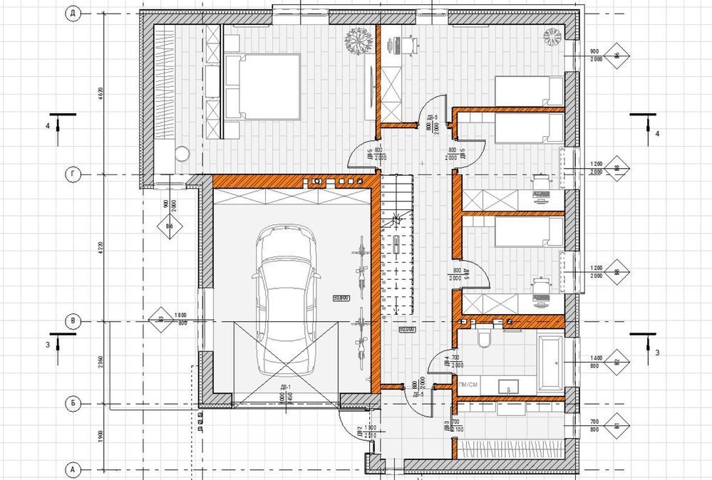 2 поверх - гараж, спальня/вітальня, кімнати (3), санвузол, гардеробна