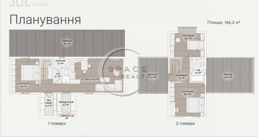 2 санвузли;