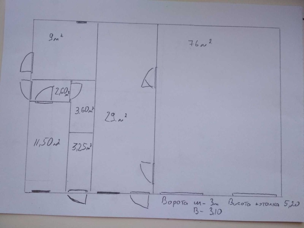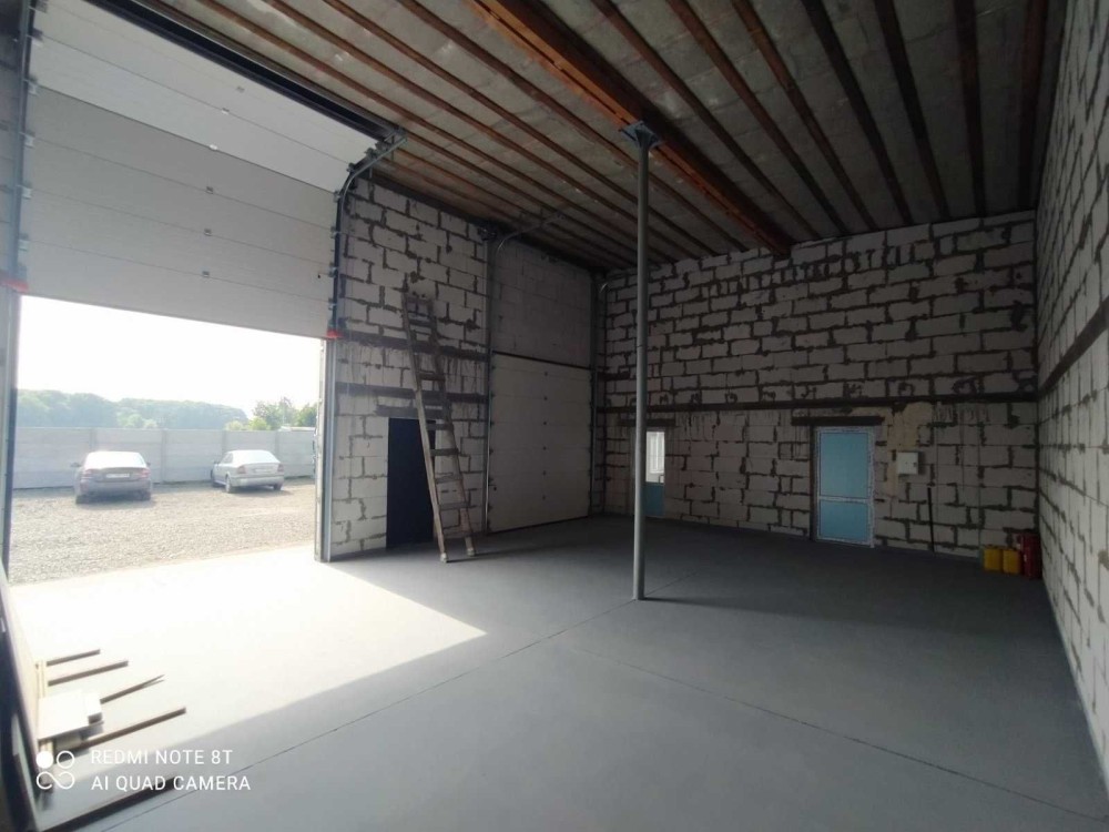 Бокс 76м2, висотою 6,3м. Двоє ролетних воріт 3м х 3,15м.