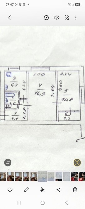Загальна площа квартири 43 кв.м., кухня 6.9 кв.м. Квартира має жилий стан, але потребує якісного і сучасного ремонту.