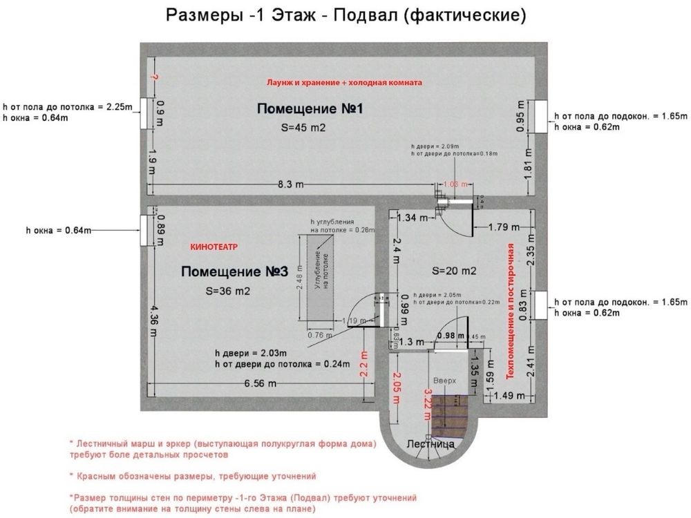 Повноцінний підвальний поверх (укриття, кінотеатр) на 100м2.