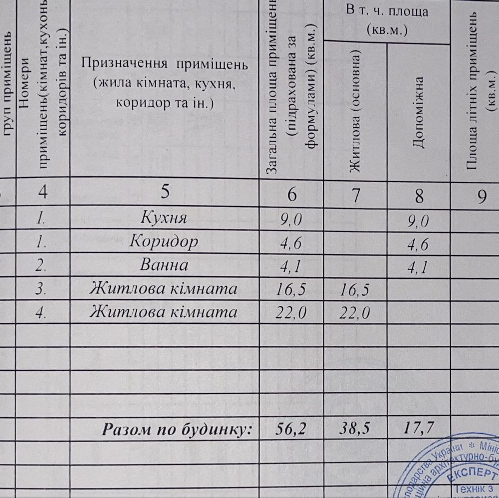 Загальна площа - 56,2 м, житлова - 38,5 м.