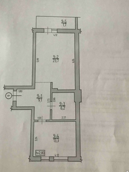 Продаж чорнової, великої однокімнатної. 54 м.кв.