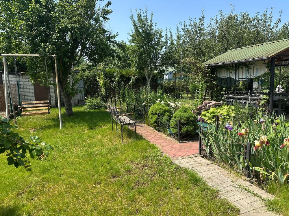 Продам затишний, доглянутий дачний будиночок 1986 р, цегляний, вікна-склопакети. Цокольний поверх, заглиблений :майстерня і кухня (балон газ), перший поверх: веранда і 3 кімнати (13+10 +8 кв. м.), піч дров’яна, другий поверх: 2 кімнати (8+9 кв. м), типу мансарди. Зручності у дворі. У санвузлі є душ, з колонкою і встановлений електр. нагрівач (проточний). Є 2 свердловини. Убиральня-яма бетонна.-8 куб .м. На ділянці росте смородина, фруктові дерева, багато квітів. Прекрасна і міцна гойдалка подарує дітям радість, а затишна альтанка допоможе зібрати вашу родину та друзів на смачний шашлик. Поруч доброзичливі сусіди. На вулиці проходить газова труба. Відстань до затоки 600 м, до Дніпра 1 км. Земельна ділянка 5 соток під садівництво (20 на 25). Адреса: Київська область, Бориспільський район, Гнідинська сільська рада, садове товариство «Мрія» садівничого масиву «Вишеньки», вулиця Озерна 4, буд 17