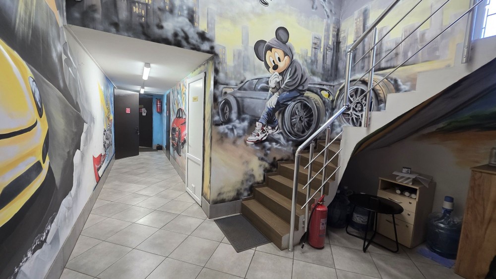 лещата, гідравніка для заміни амортизаторів, гідравліка для рихтування, спотер, малярна камера з дизельним італійським котлом і автоматикою, обладнення для шиномонтажа, кран для підйома мотора,система відеонагляду, охорона, телевізор, кондиціонери купер хантер, компресор з ресівером, набори інструменту для роботи з ходовою автомобіля, дизельний генератор джон дір на 38кв, бойлер, інвертор з акумуляторами для автоматичних воріт і системи відео фіксації, оптичний інтернет, котел на відпрацьованому маслі, гідравлічний прес для перепресування сайленблоків, сварка напівавтомат, 2ві кавомашини, холодильник, електрочайник, мікрохвильова.