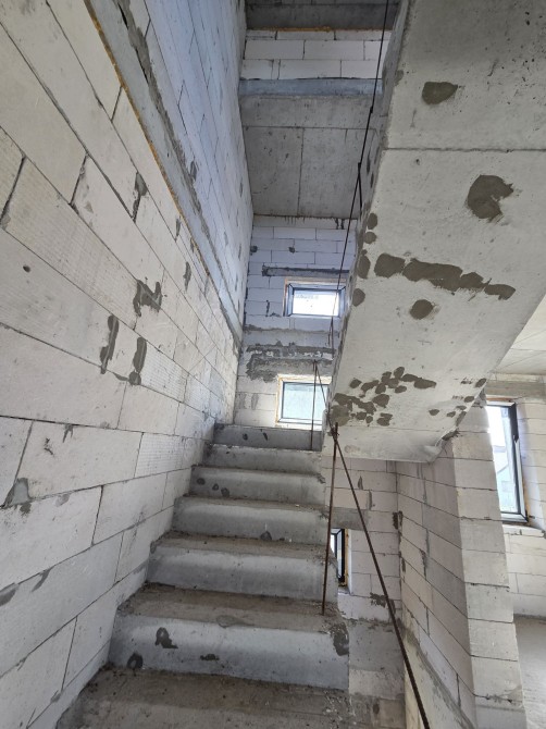 Будинок збудований з газоблоків, утеплений мінеральною ватою. При будівництві застосовувалися лише якісні матеріали та сучасні безпечні технології. Кожен елемент будинку продуманий архітекторами до дрібниць.