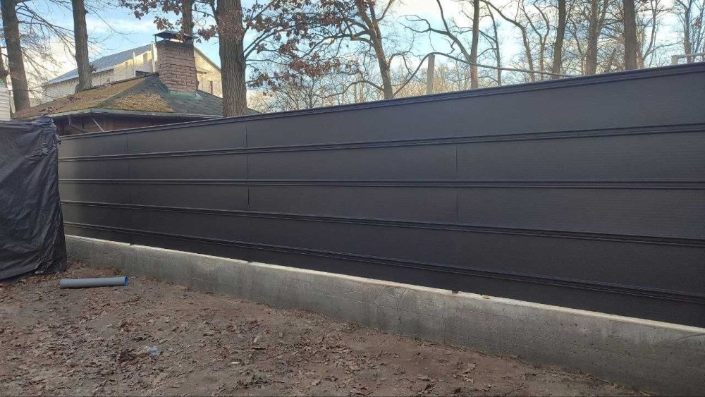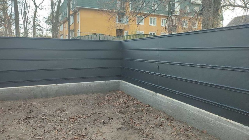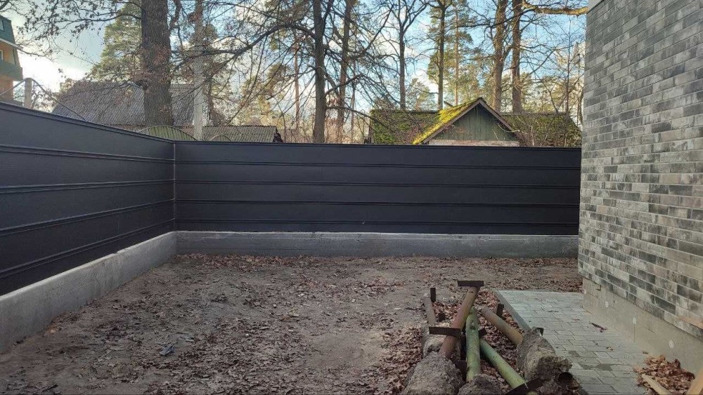 Благоустрій: бруківка та стильний паркан з металопрофілю.