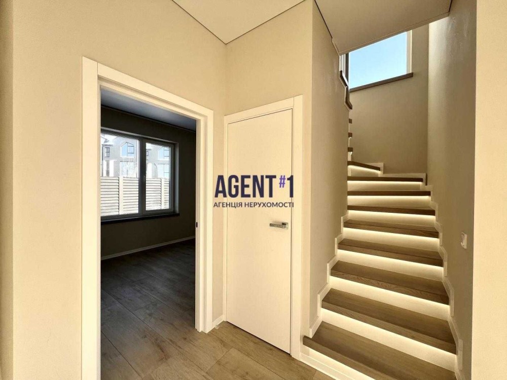 Велика кухня-вітальня 30 кв.м., гостьова кімната на першому поверсі та 3 спальні кімнати на другому поверсі.