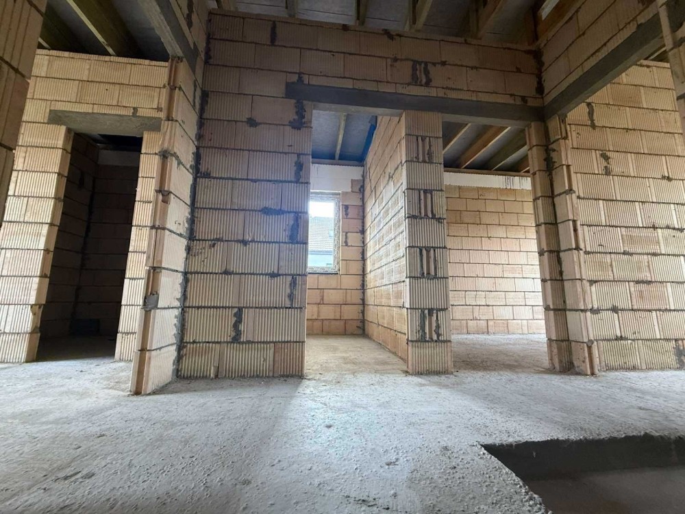 Дах із металопрофілю (Словаччина, 0.5 мм), утеплення — мінвата 200 мм + гідро- та паробар’єри, пінопласт 150 мм — дім теплий, енергоефективний і довговічний.