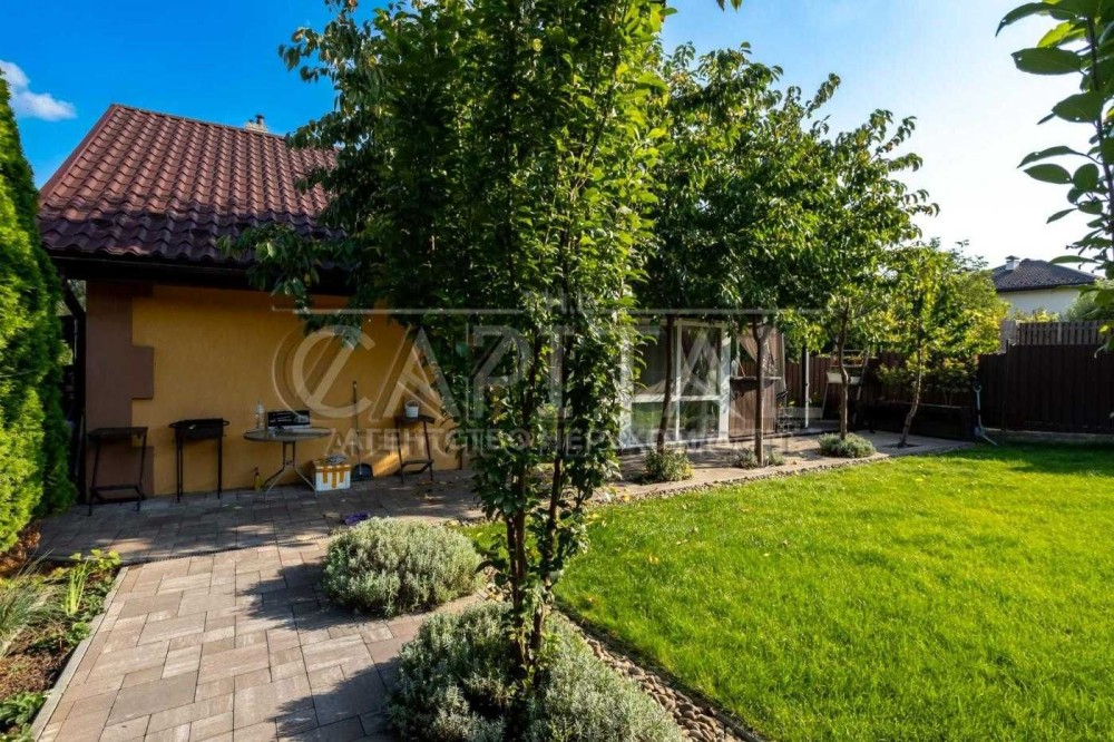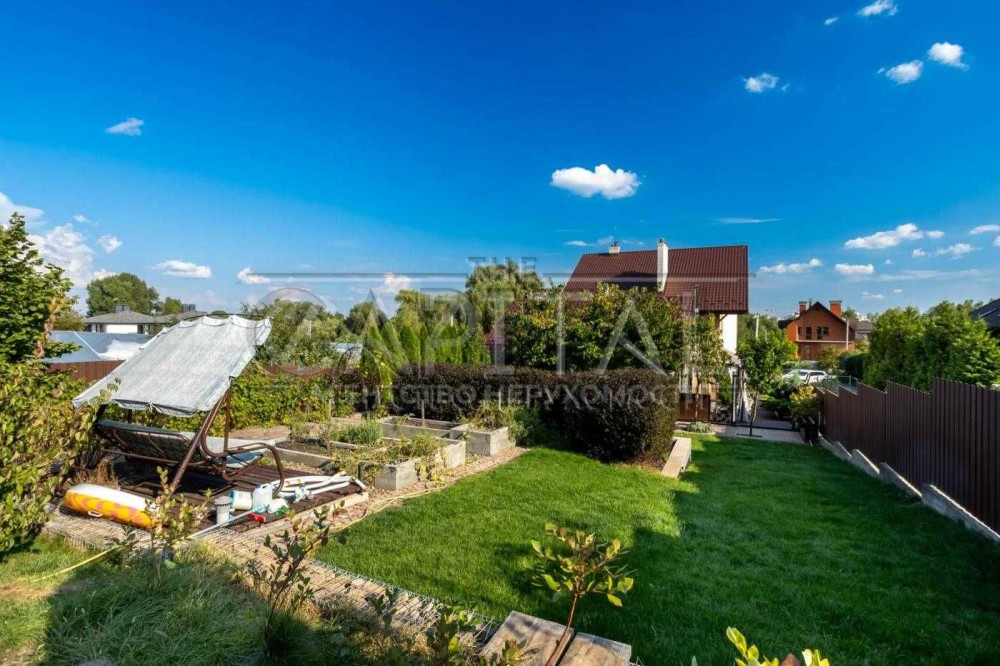 Земельна ділянка – 11 соток з ландшафтним дизайном, озелененням, садом, теплицею, високими грядками, габіонами з підсвіткою, вольєром та зовнішнім санвузлом.