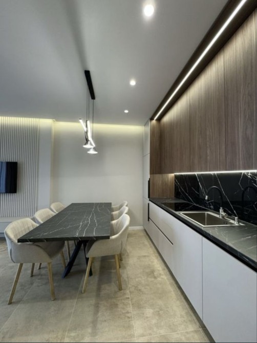 Серед техніки: посудомийна машина, плита, мікрохвильова піч, духова шафа, вмонтований холодильник, кондиціонер, пральна та сушильна машина , роутер для Wi-Fi і т.д.