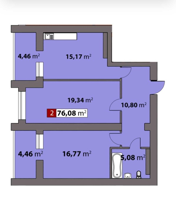 • Общая площадь 76.08 м2