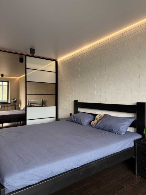 У спальні зроблений новий ремонт у 2025 році. Вбудовані меблі, зроблені під замовлення, нова техніка. Все залишається новому власнику.