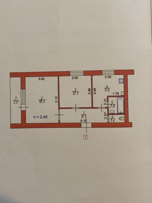 Загальна площа 55,5м.кв.,кімнати 18,5м.кв. та 12,1 м.кв..