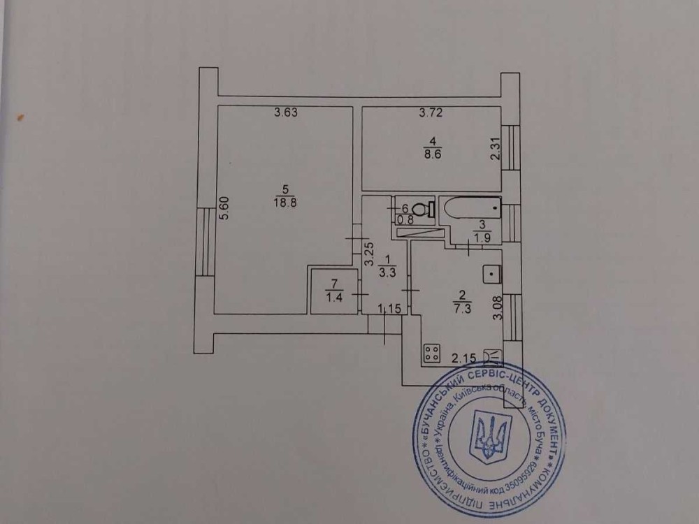 Двокімнатна квартира в Бучі на першому поверсі двоповерхового будинку. Загальна площа – 44 м². Квартира житлова, потребує ремонту, що дозволяє зробити ремонт під власний стиль.