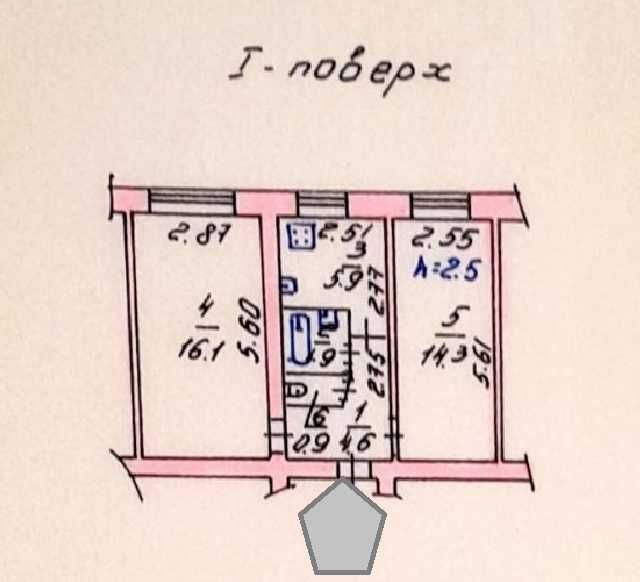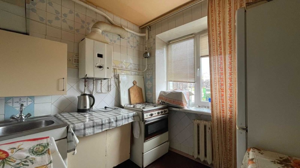 Знаходиться на першому поверсі п'ятиповерхового будинку, централізоване газове опалення, є газова колонка і бойлер.
