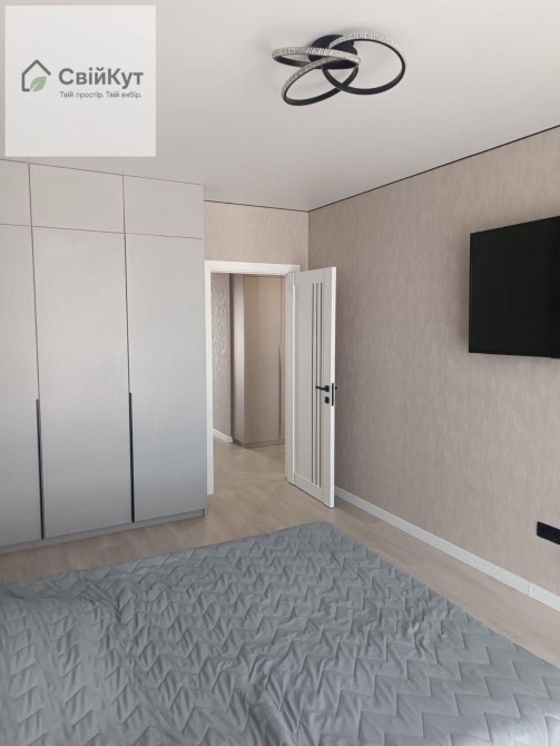 Дві окремі кімнати, великий балкон, кухня 15 м2, гардеробна та просторий санвузол.