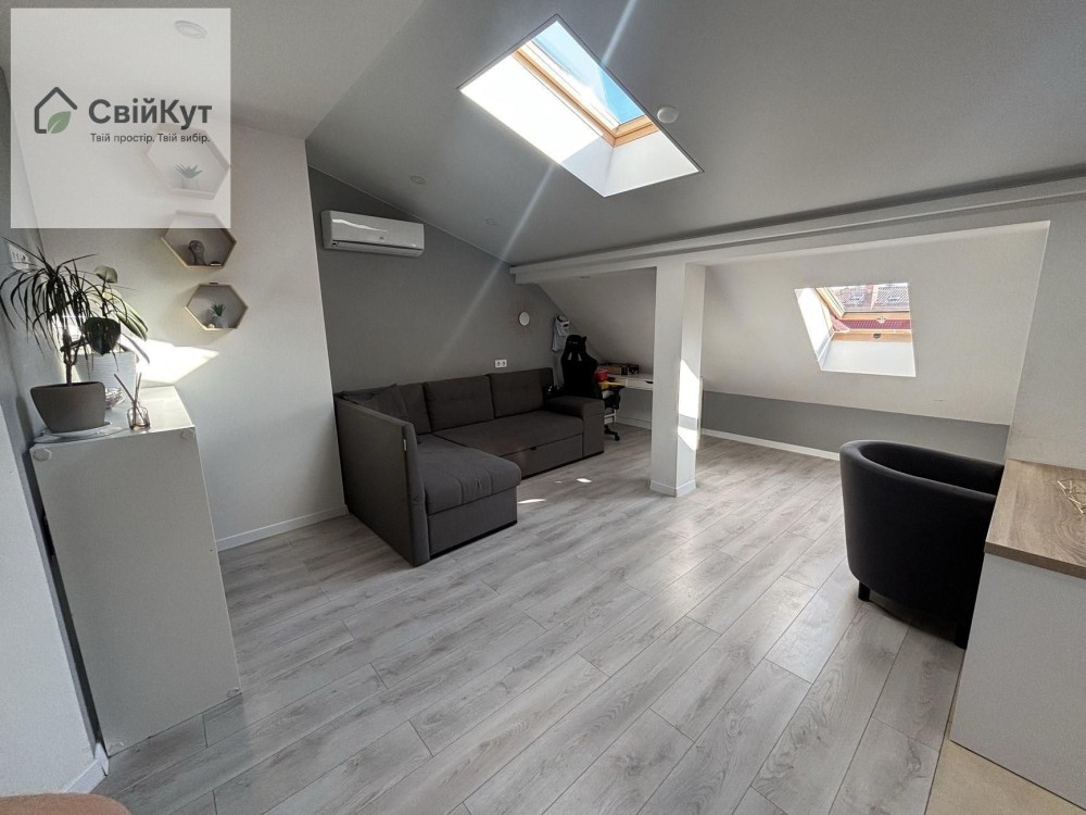 Світла та затишна квартира на мансардному поверсі з сучасним ремонтом. Продумане планування, багато природного світла.