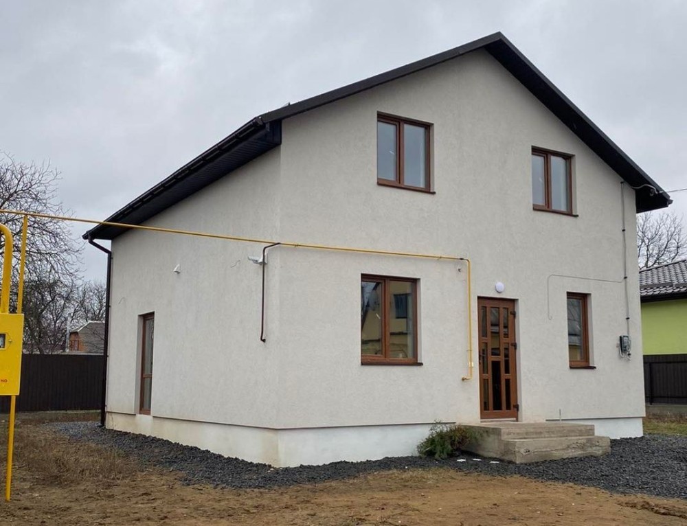 Площа будинку 120м2, збудований з газобетону, стіни утеплені пінопластом 100мм, фасад оздоблений короїдом, залізобетонне перекриття, здається в чистовому стані, заведена електрика, газ, криниця, септик, натяжні стелі, тепла підлога на першому поверсі. Ділянка 5 соток землі. У вартість входить огорожа та документи.