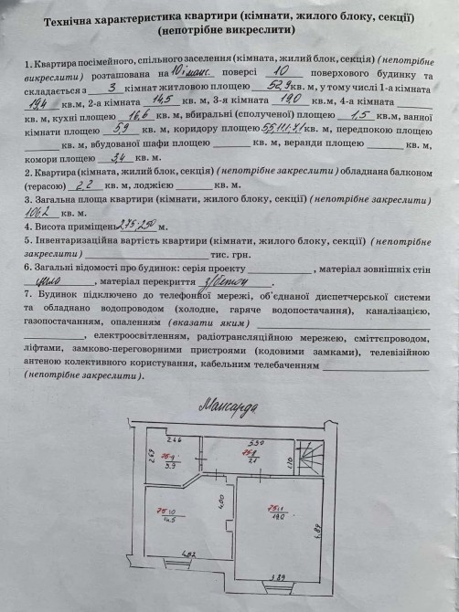 - Кількість кімнат — 3