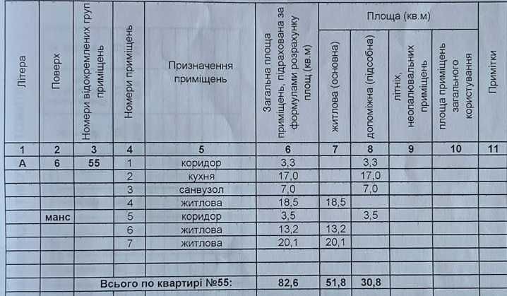 Квартира на 6-му поверсі, загальна площа 82,6м.кв.