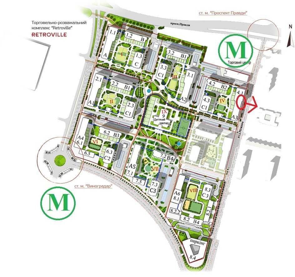 ЖК Варшавський 1 має розвинену інфраструктуру: магазини, кафе, офісні центри, дитячі майданчики поруч.