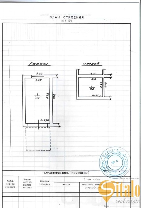 Загальна площа 20.9 м². Висота стелі – 2,5 м. Під гаражем розташований погріб площею 8 м², обладнаний дерев’яними стелажами .