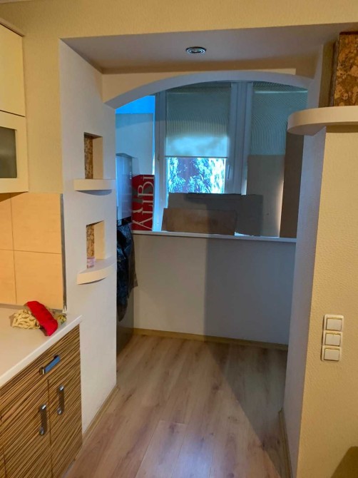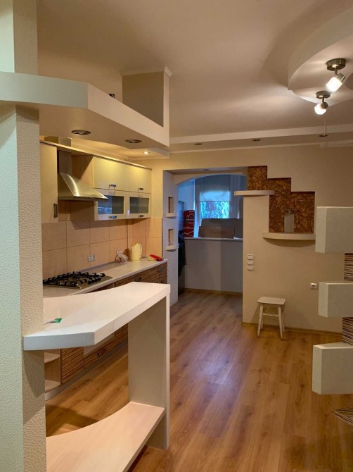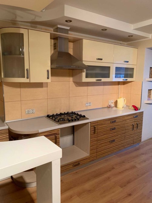 Продаж гарної світлої 3 кімнатної квартири на 8-му поверсі 9-и поверхового теплого цегляного будинку, р-н Казбет, вул. Хрещатик, 55. Загальна площа 99 кв.м, площа кухні-студії 34,5 кв.м. У квартирі виконаний якісний дизайнерський ремонт, виконане внутрішнє утеплення стін (мінвата). Має 3 окремі кімнати та кухня-студія, сумісний санвузол, 2 балкони. Якісні МПВ. Підлога в санвузлі – плитка та тепла підлога, кімнати - ламінат. Стеля дизайнерська та гіпсокартон. Є гардероп, стілажі, окрема невеличка кімната (можна позиціонувати як кабінет, або гардеропну). Міжкімнатні двері – якісна дерев’яна столярка.
