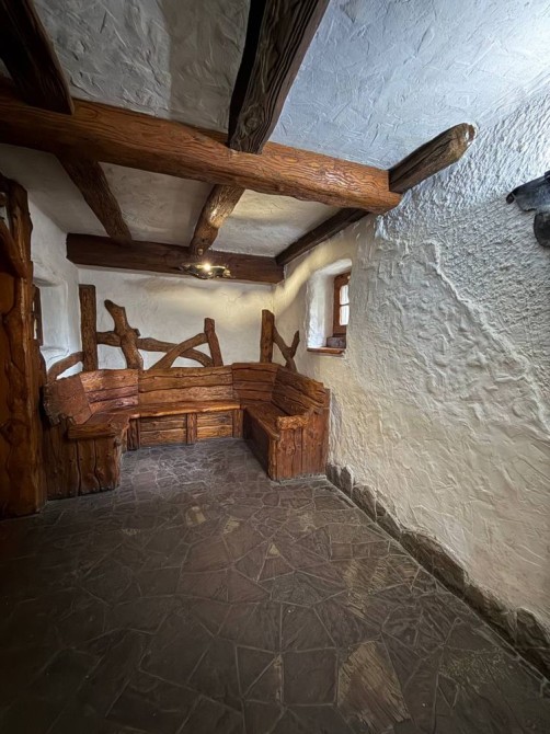 • інтер’єр оздоблений деревом та кованими елементами, що створює автентичну атмосферу;