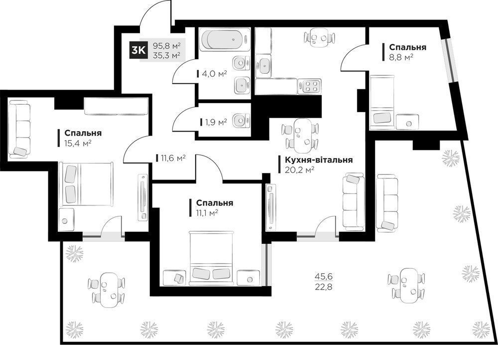 • Общая площадь 95.8 м2