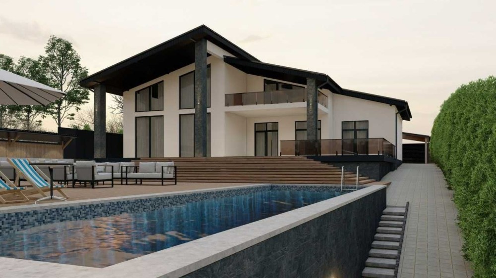 Проект будинку розроблявся та будувався під себе, продумане якісне планування з панорамними вікнами з усіх спальних кімнат на озера, великою кухнею вітальнею, що дасть можливість прийому великою кількості гостей. Дві великі тераси з виходами зі спалень. Використовувались виключно високоякісні матеріали.